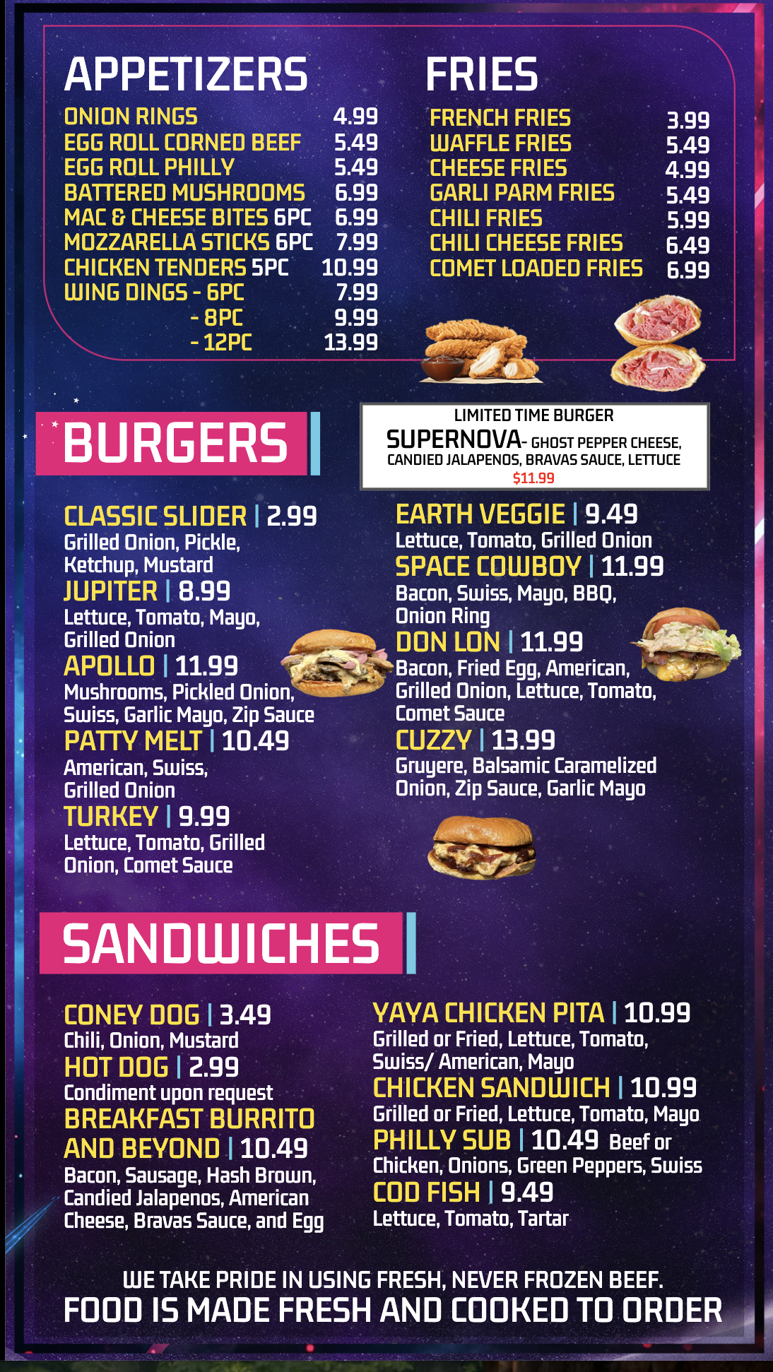 Cheese Sauce, Bacon, Grilled Onions, Comet Sauce